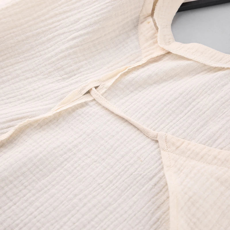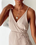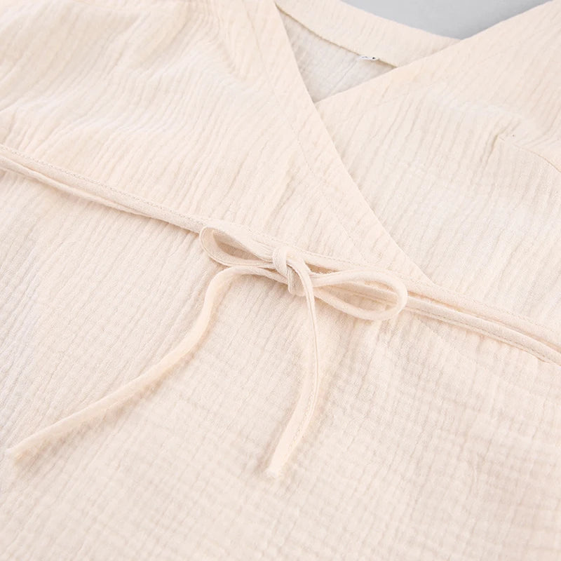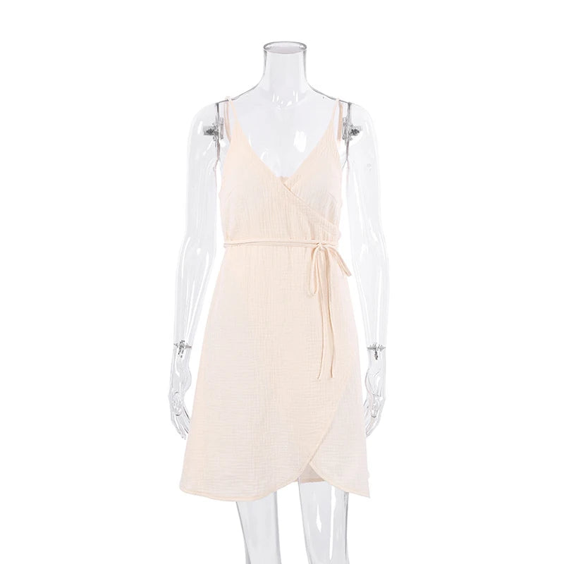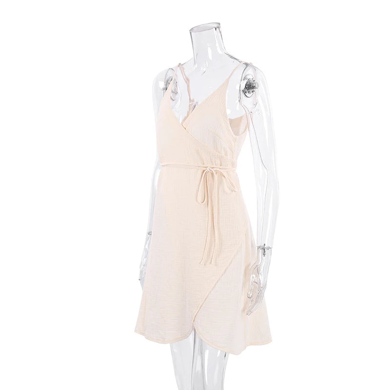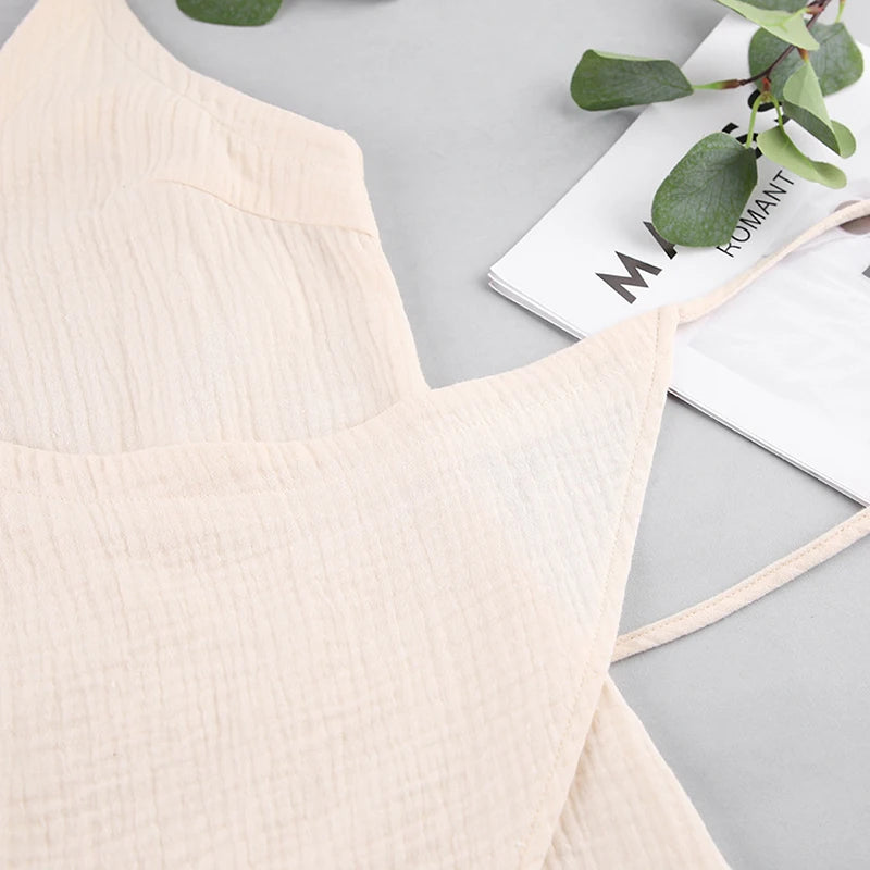 Vestido casual de musselina 100% algodão – decote em V sexy, fenda envolvente sem mangas, vestido de verão para praia e festa