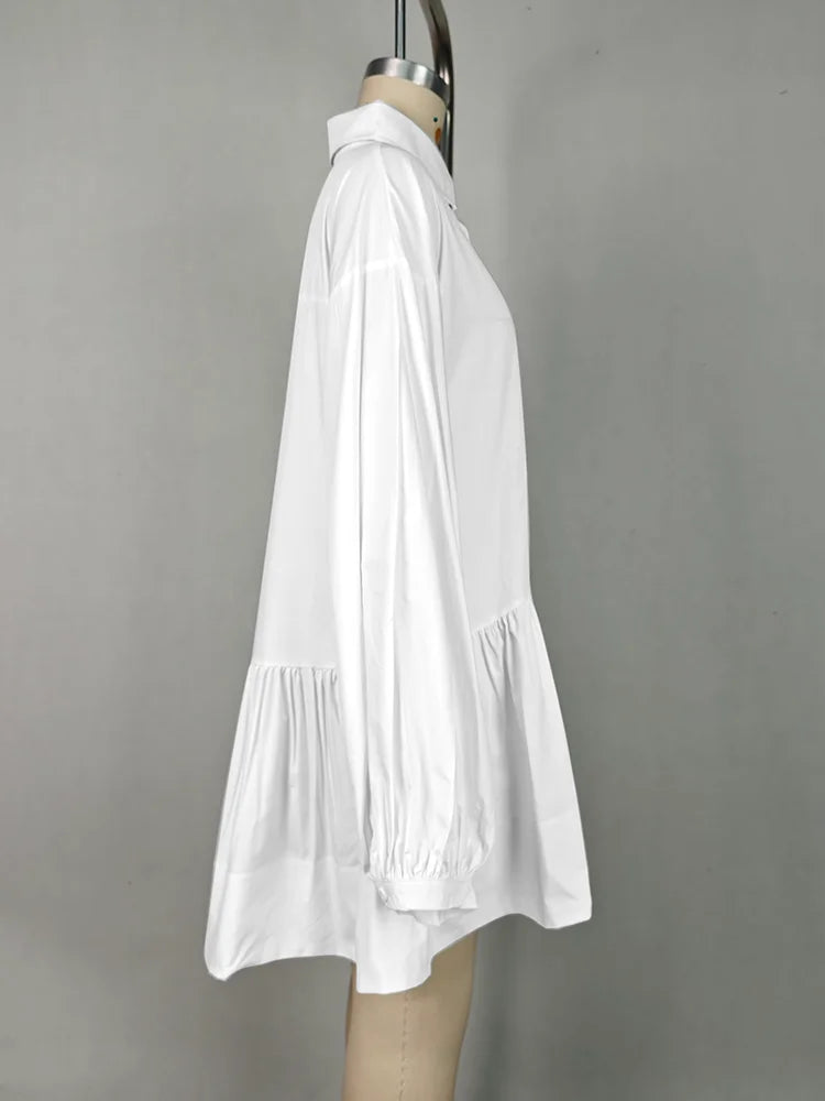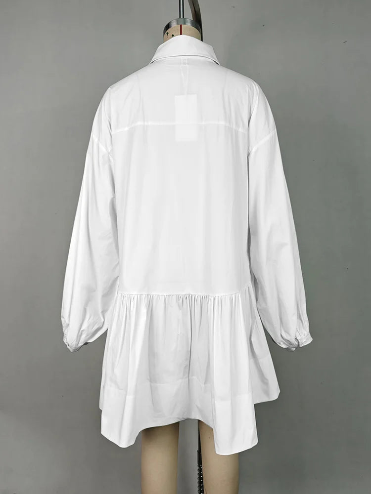 Shirt-Style Mini Dress – Chic Pleats & Timeless Elegance