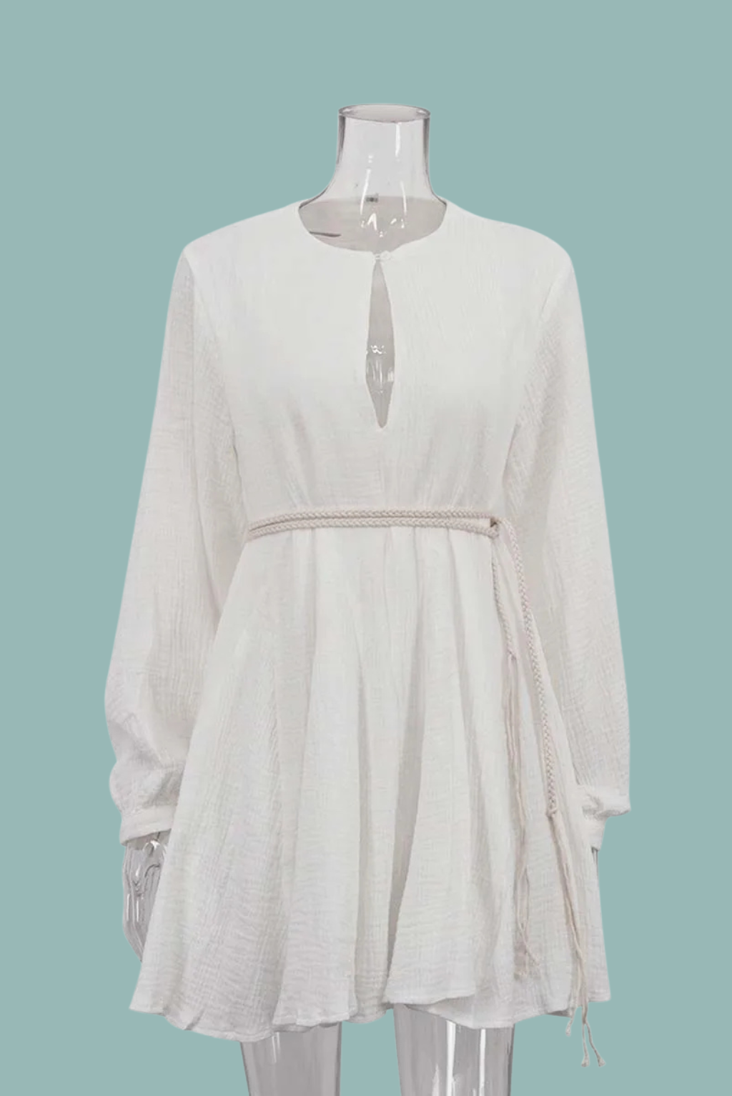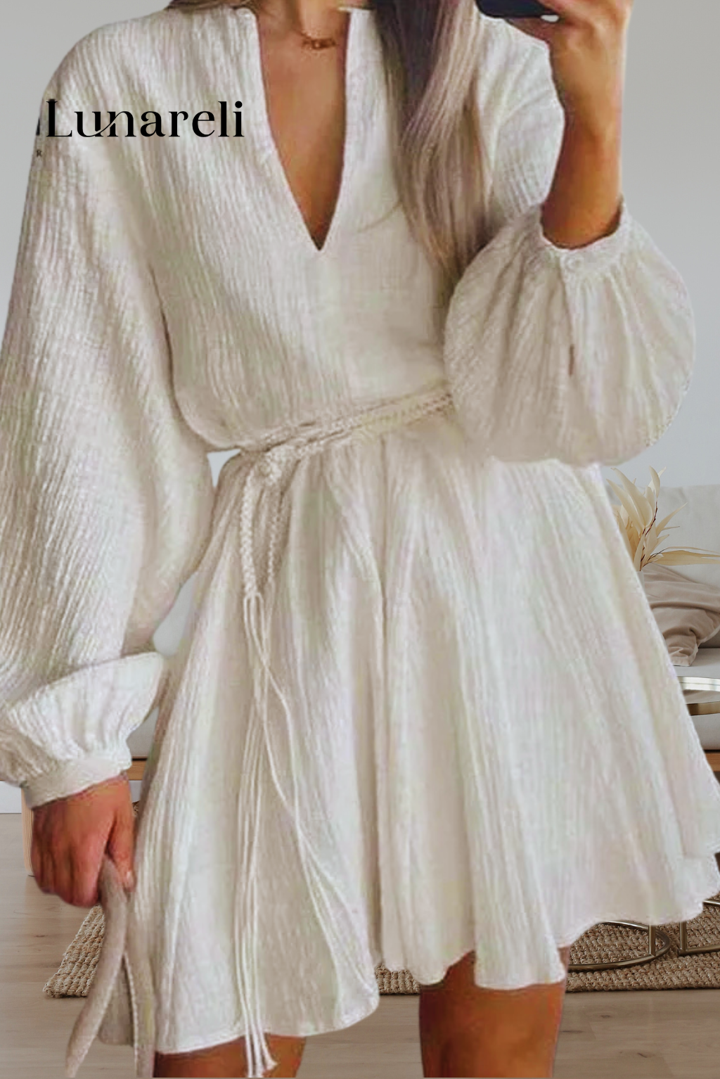 Elevate your everyday style with the Elegant Beige Cotton Dress by O.Y.MIMI. Designed for comfort and effortless charm, this V-neck, long sleeve mini dress features a lace-up detail and a loose pleated skirt, perfect for casual outings, streetwear, or spring gatherings. Crafted from high-quality cotton, it’s breathable, soft, and ideal for all-day wear.