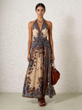 Crafted from 100% natural cotton fibers, this lightweight and breathable dress ensures all-day comfort, making it ideal for spring and summer. The halter neckline and A-line silhouette create a flattering fit, while the bow detail adds a touch of feminine charm.