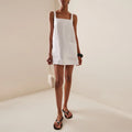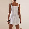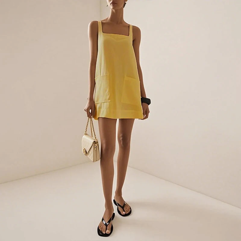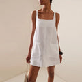 Mantenha-se fresca e estilosa nesta estação com nosso vestido de verão em mistura de linho e algodão , projetado para mulheres que prezam pelo conforto sem abrir mão da elegância. Com decote quadrado e alças finas , este minivestido oferece uma silhueta descontraída e chique que valoriza todos os tipos de corpo.