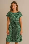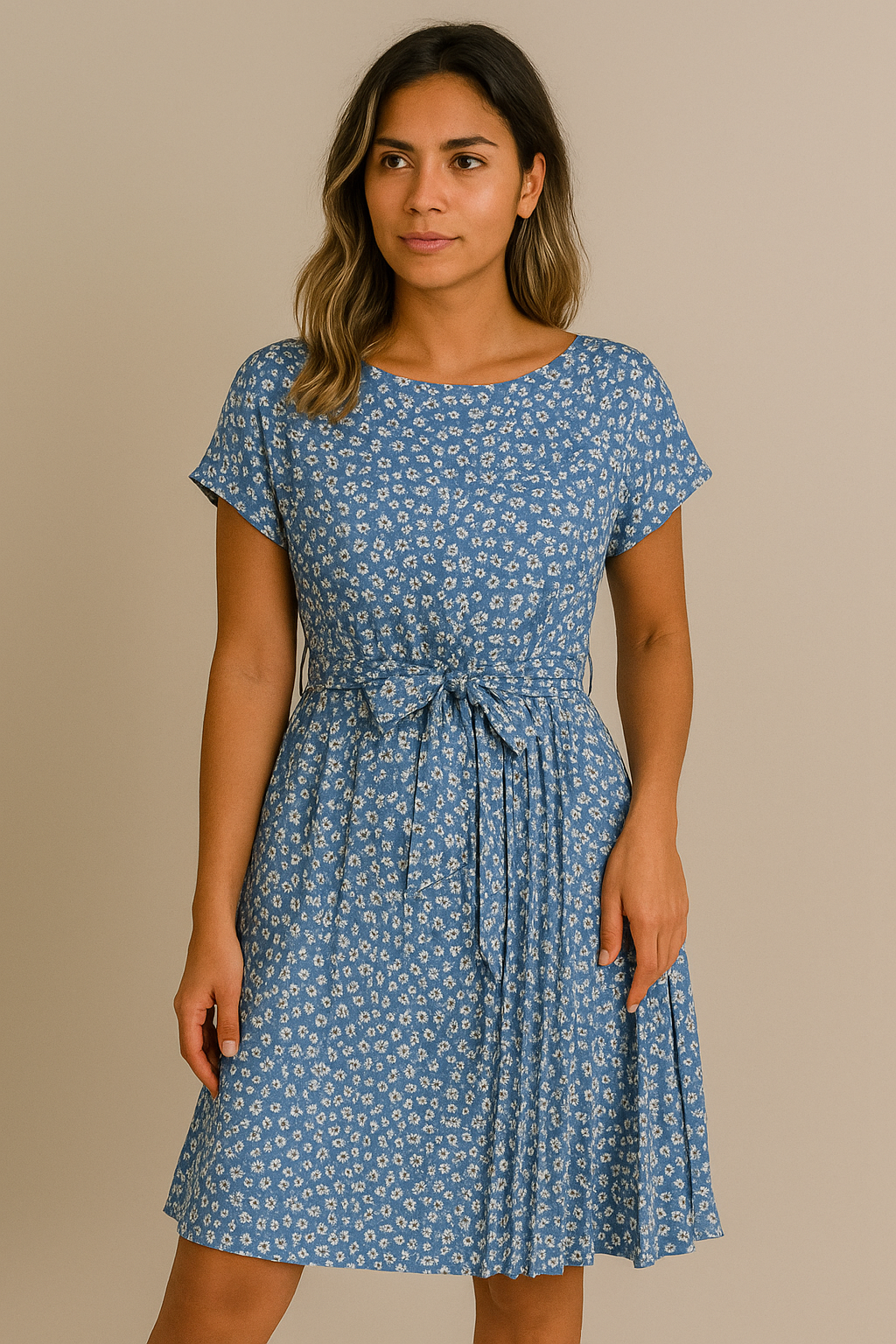 Featuring an elegant A-line fit, comfortable short sleeves, and a flattering empire waistline, it enhances your silhouette with effortless femininity.