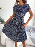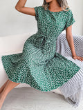 Romantic A-Line Floral Dress – Short Sleeve & High Waist