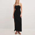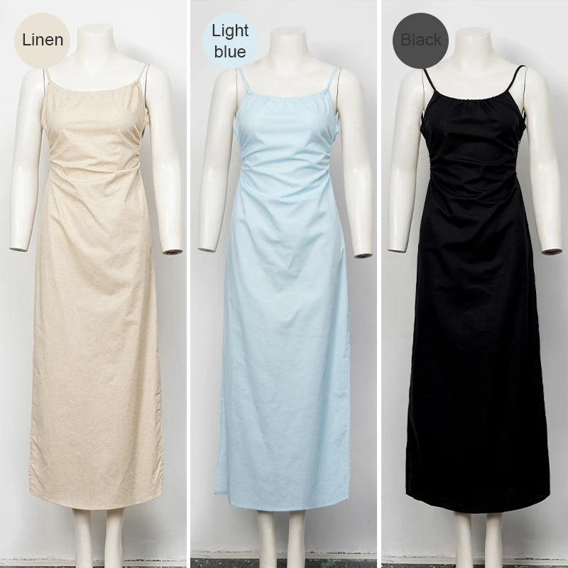 Breeze through summer in style with this backless cotton-linen maxi dress, designed for effortless elegance. The breathable cotton-linen blend keeps you cool on warm days, while the ankle-length fit-and-flare silhouette flatters every figure.