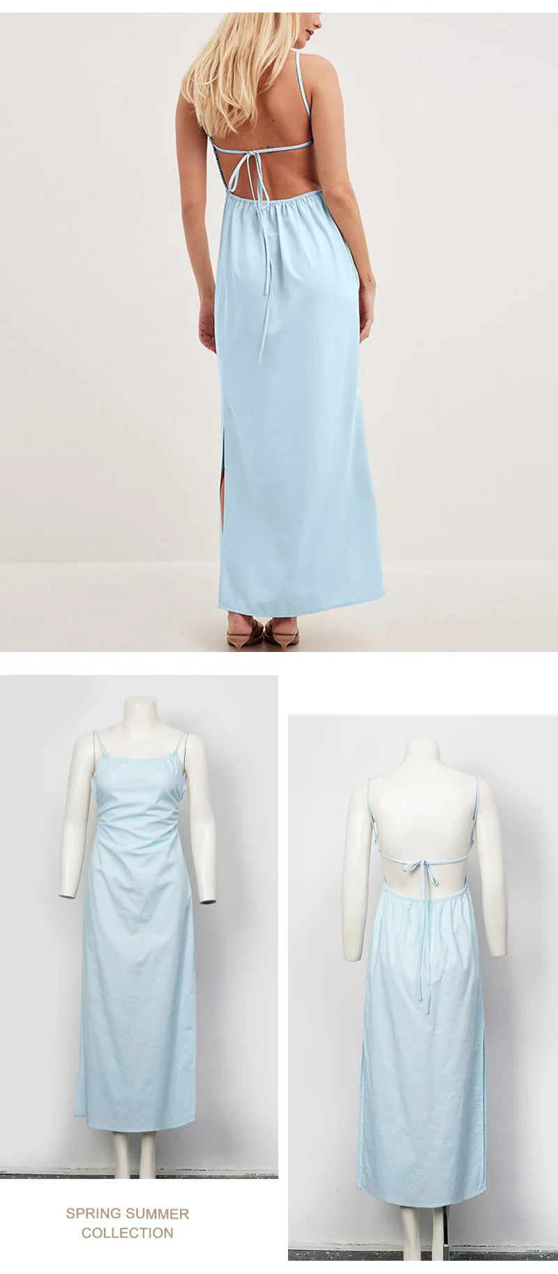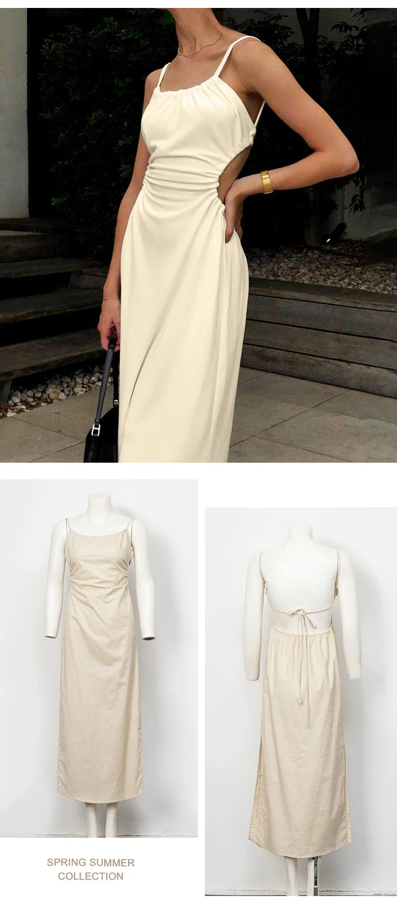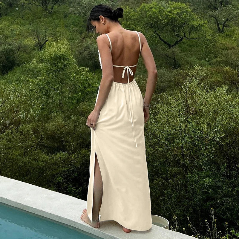 Backless Cotton-Linen Maxi Dress – Chic Tie Detail & Summer Elegance